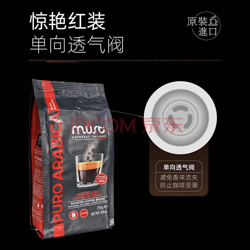 商品名称:LOOCIMUST意大利纯进口100%阿拉比卡 中度烘焙黑咖啡豆250g/袋