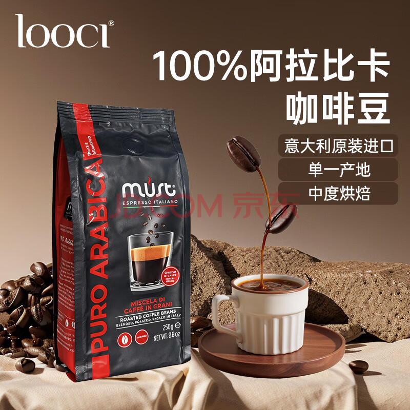 > LOOCIMUST意大利纯进口100%阿拉比卡 中度烘焙黑咖啡豆250g/袋