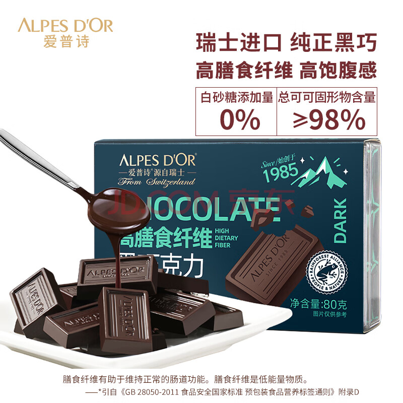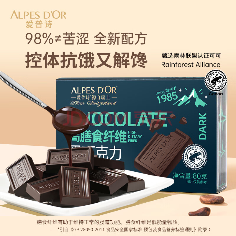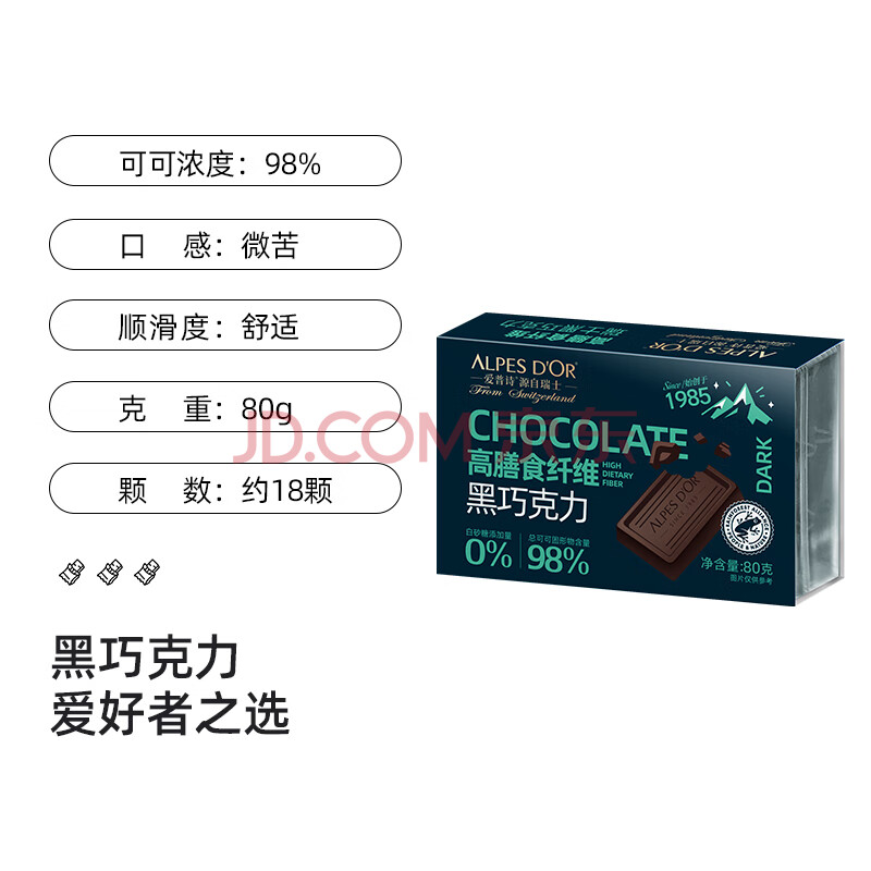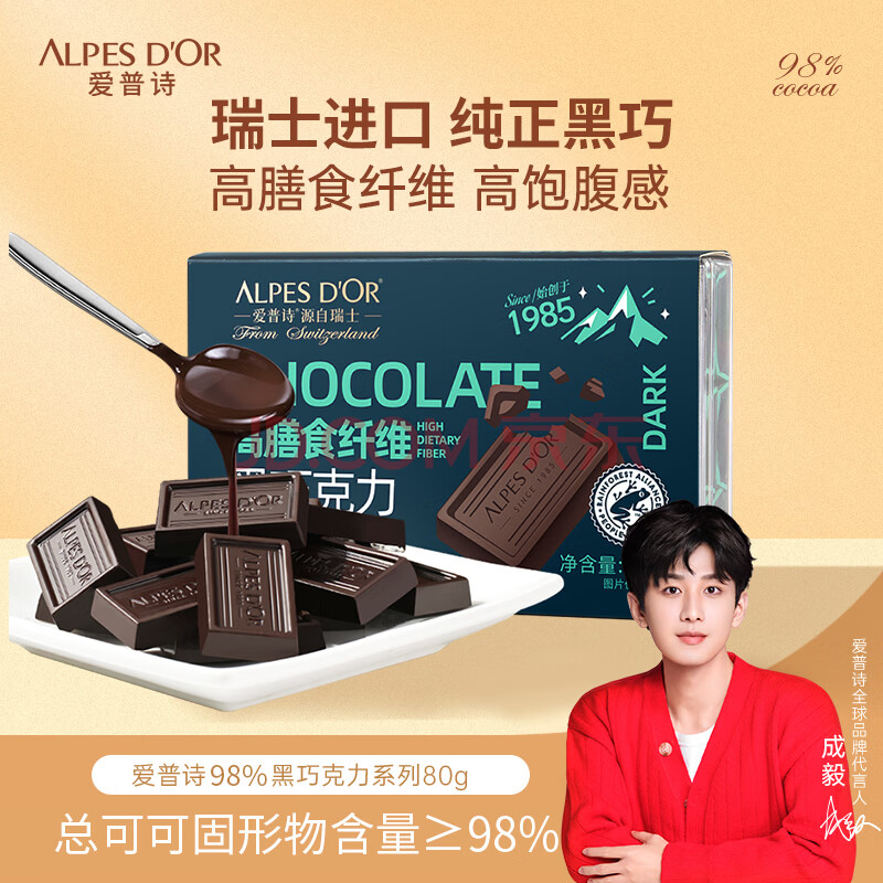 商品名称:爱普诗瑞士 98%黑巧克力80g 高膳食纤维 年货 生日礼物女 零食 成毅代言