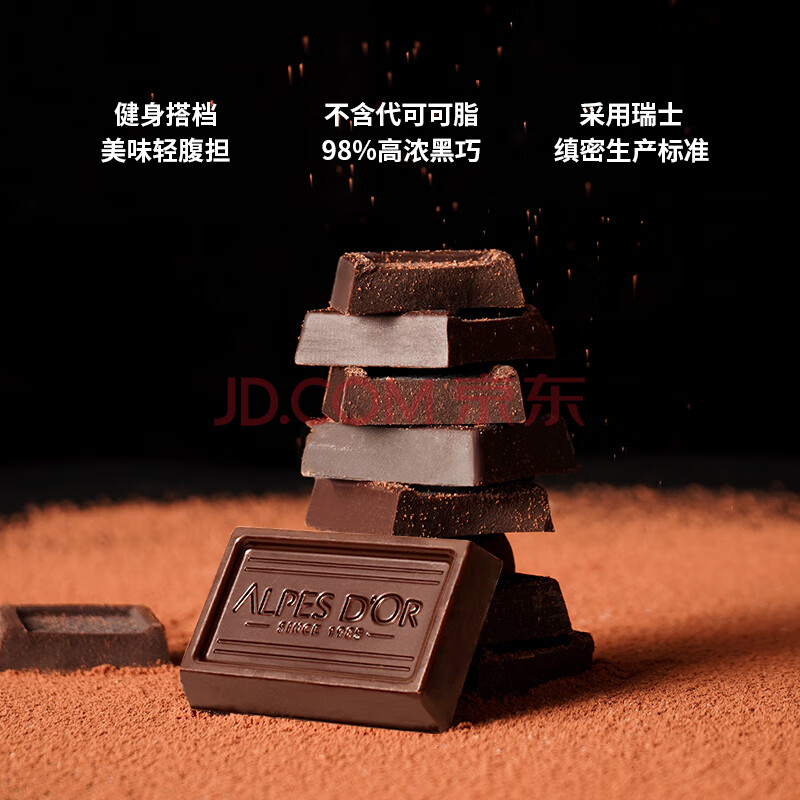 > 爱普诗瑞士 98%黑巧克力80g 高膳食纤维 年货 生日礼物女 零食 成毅代言