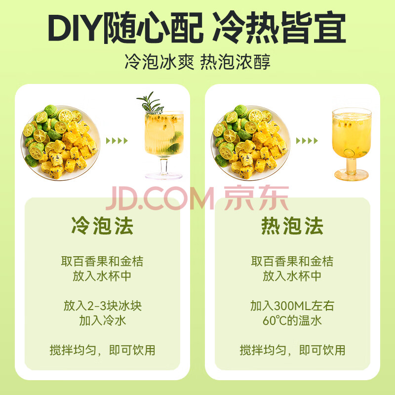 贡苑花草茶 冻干青金桔百香果茶2罐DIY组合装搭柠檬片泡水喝的果茶90g