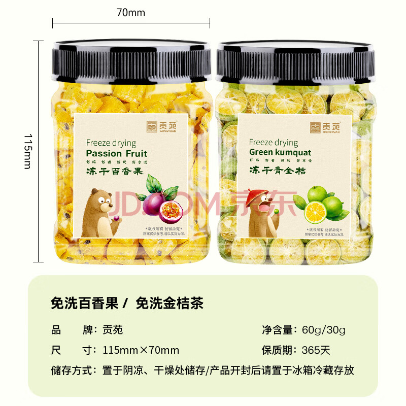 商品名称:贡苑花草茶 冻干青金桔百香果茶2罐DIY组合装搭柠檬片泡水喝的果茶90g