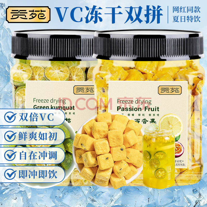 > 贡苑花草茶 冻干青金桔百香果茶2罐DIY组合装搭柠檬片泡水喝的果茶90g
