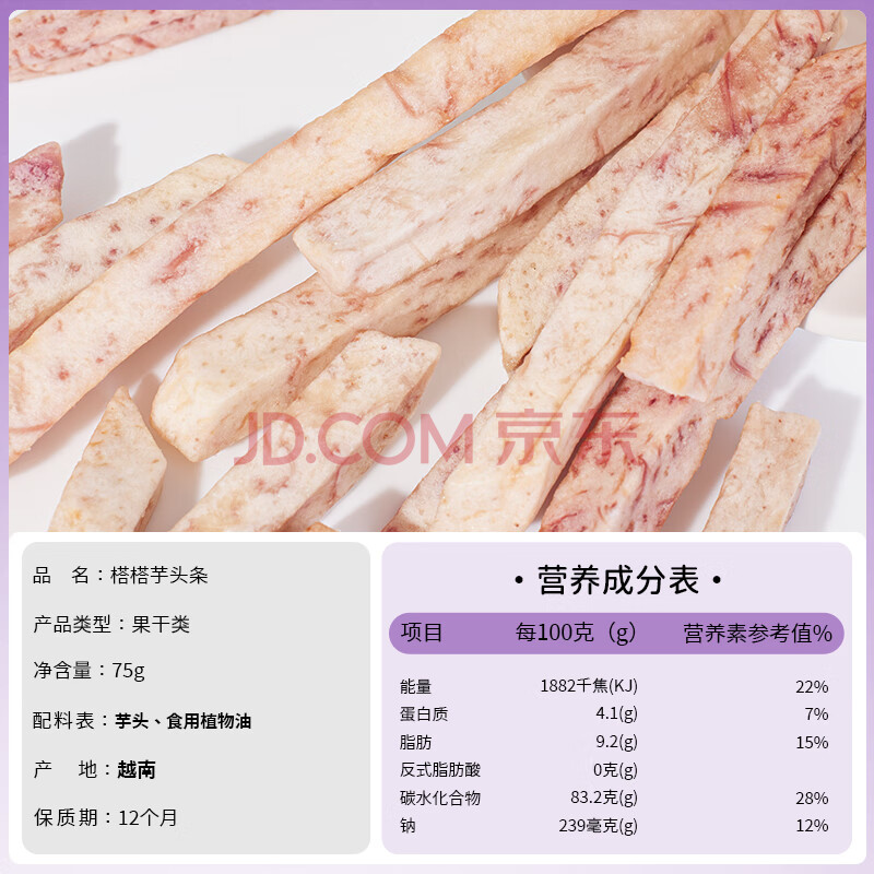 商品名称:榙榙芋头条75g/袋 越南进口网红蔬果干脆薯条 办公室休闲小零食
