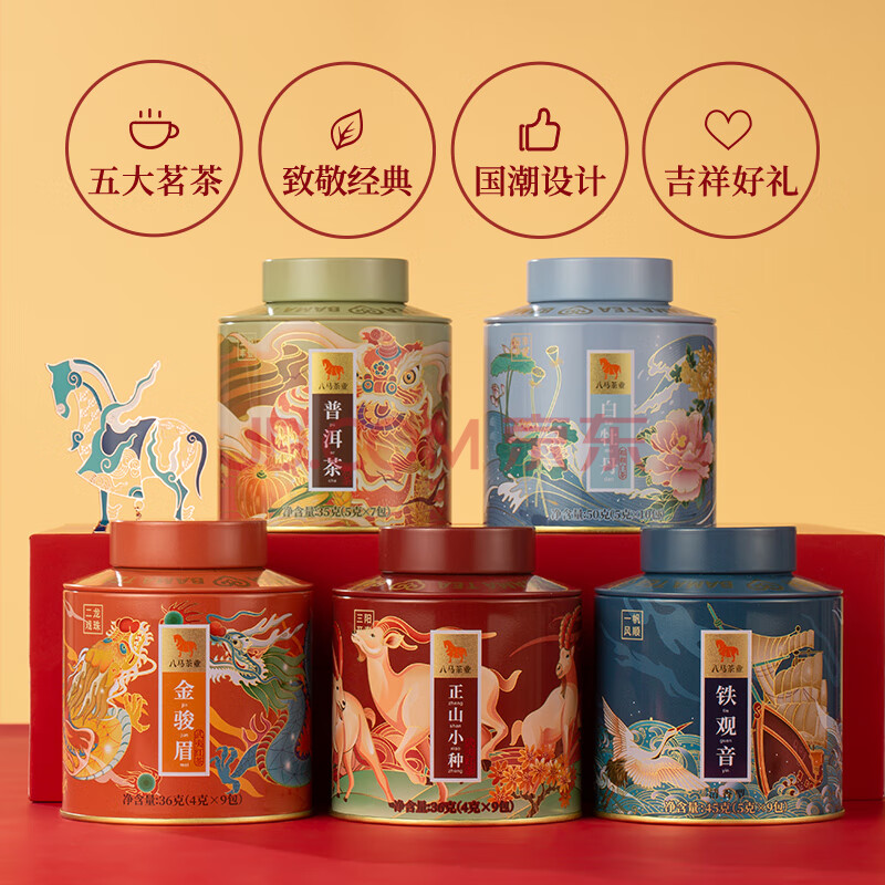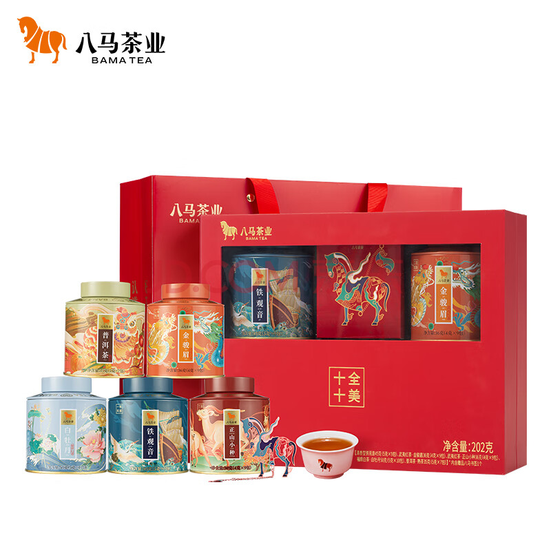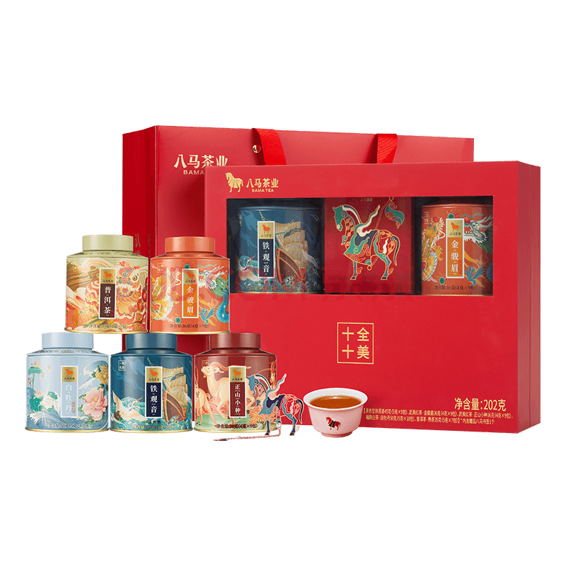 商品名称:八马茶业五大名茶礼盒202g 铁观音红茶金骏眉正山小种白茶普洱 送礼