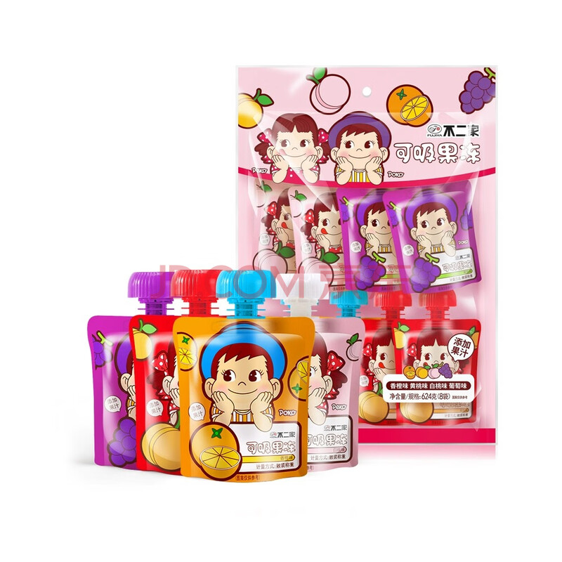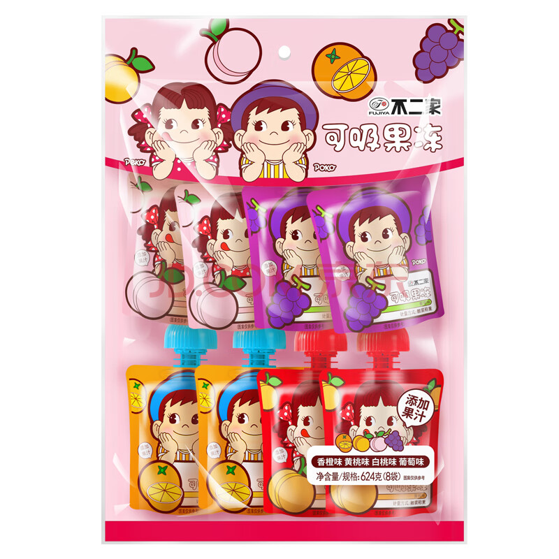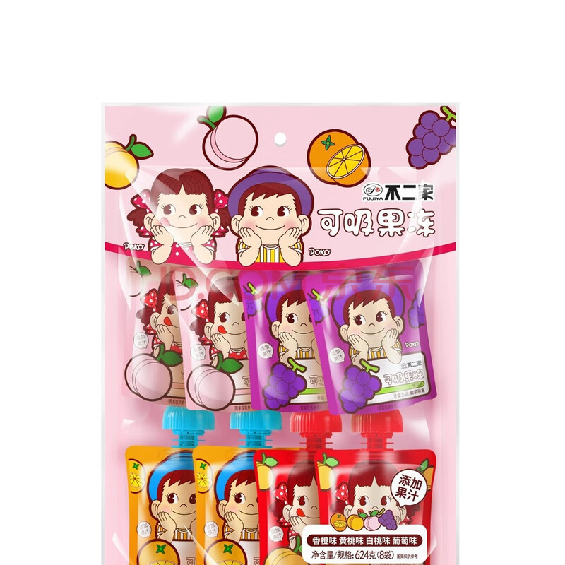 商品名称:不二家 白桃+葡萄+香橙+黄桃味可吸果冻624g(8袋)儿童零食 饮料糖果