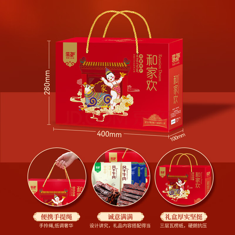 商品名称:蒙都 合家欢风干纯牛肉礼盒 1000g 盒装 肉干肉脯 休闲零食 送礼 清真