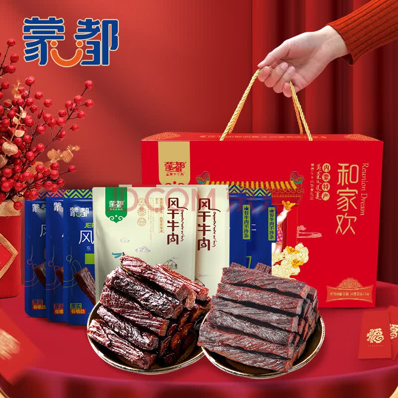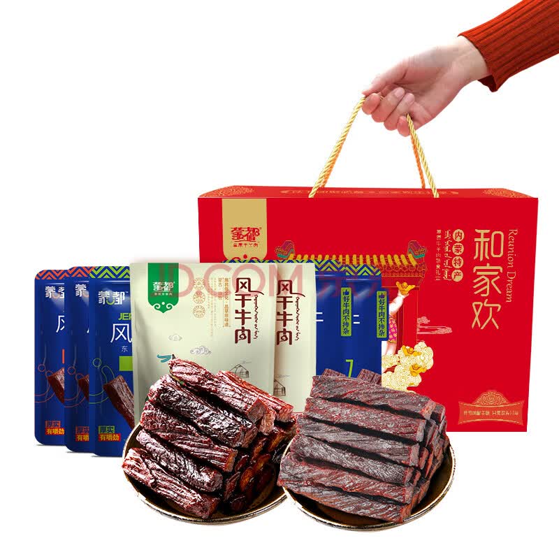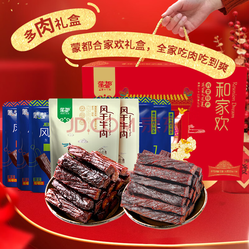 > 蒙都 合家欢风干纯牛肉礼盒 1000g 盒装 肉干肉脯 休闲零食 送礼 清真