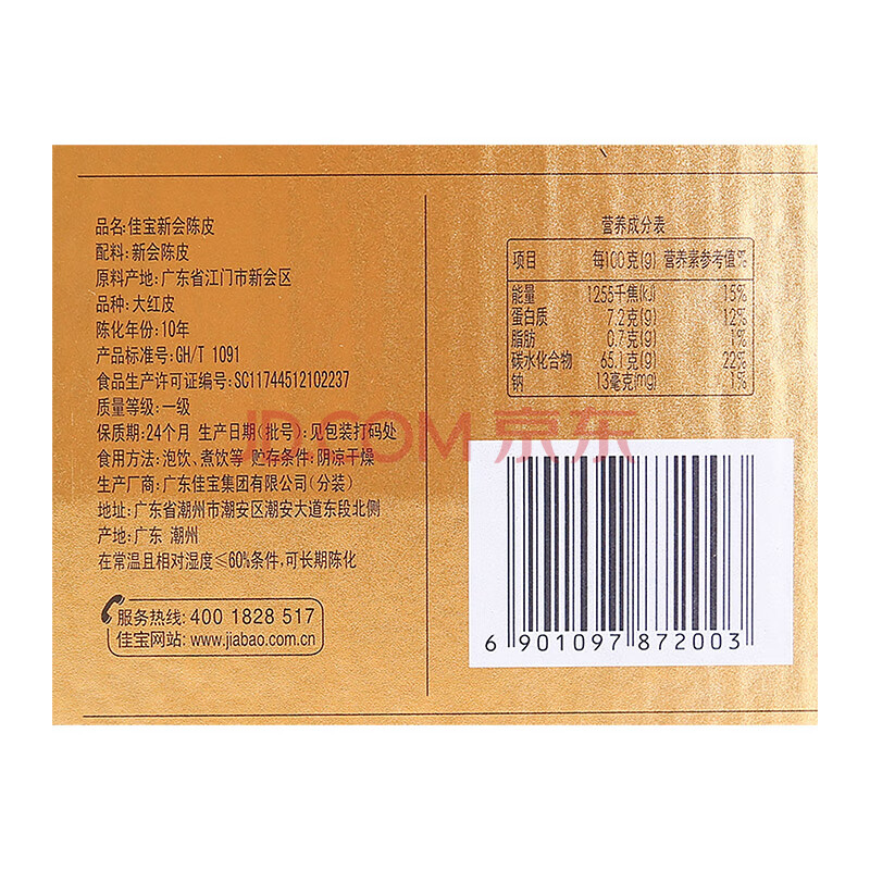 商品名称:佳宝甄选十年新会陈皮250g泡水老陈皮茶罐装礼盒广东老字号送礼佳品