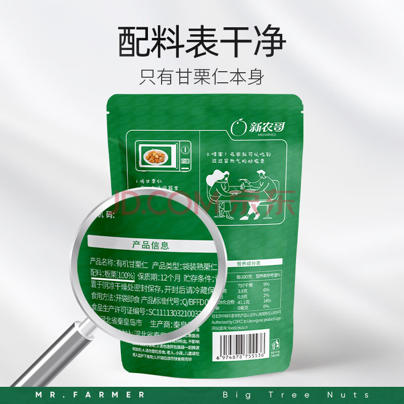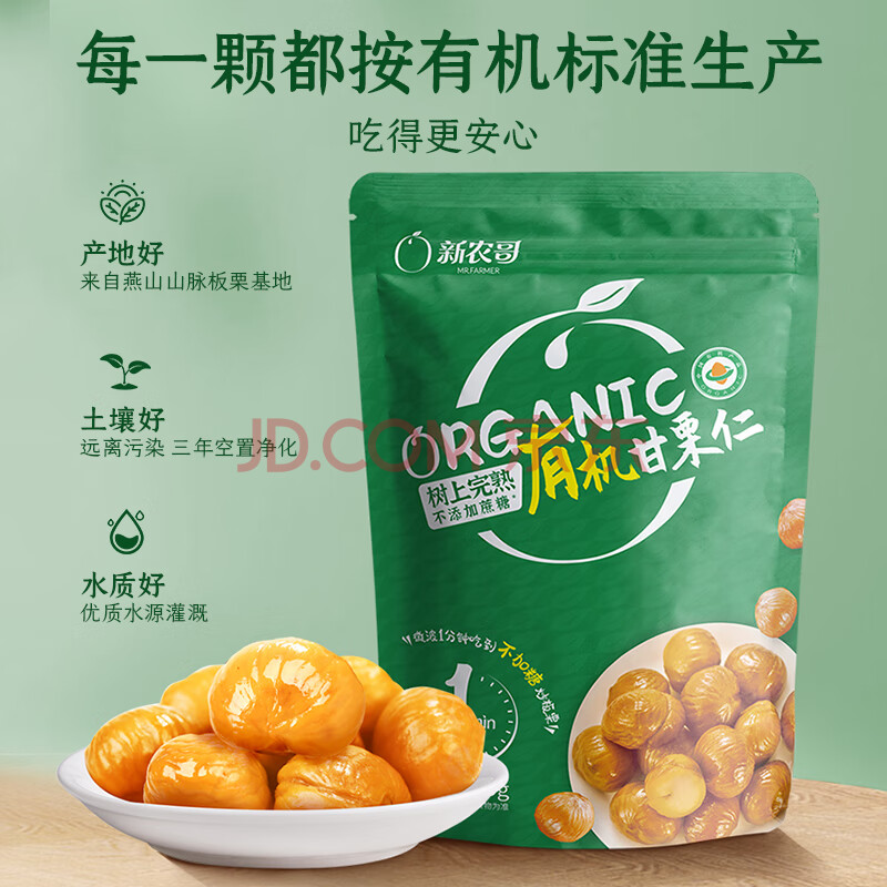 商品名称:新农哥有机板栗仁60g/袋甘栗仁休闲零食每日坚果炒货特产孕妇零食小吃