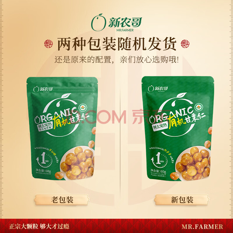 > 新农哥有机板栗仁60g/袋甘栗仁休闲零食每日坚果炒货特产孕妇零食小吃
