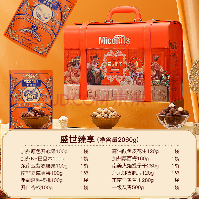 商品名称:美荻斯高端皮质坚果礼盒休闲零食礼包送长辈礼品 盛世臻享2060g