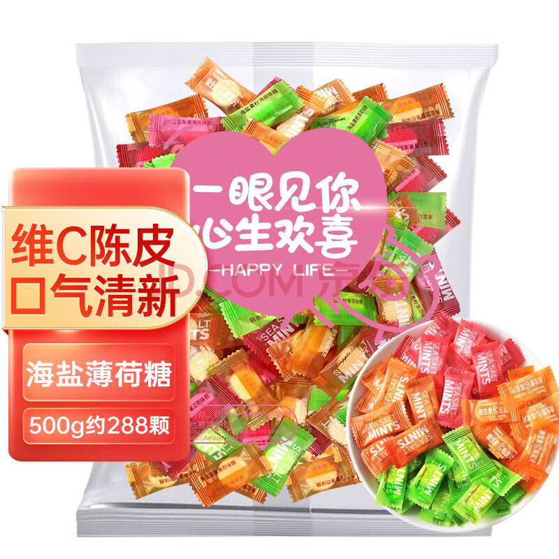 商品名称:阿鸣哥海盐薄荷糖500g无添加蔗糖清新口气强劲清凉润喉糖果38女神节礼物