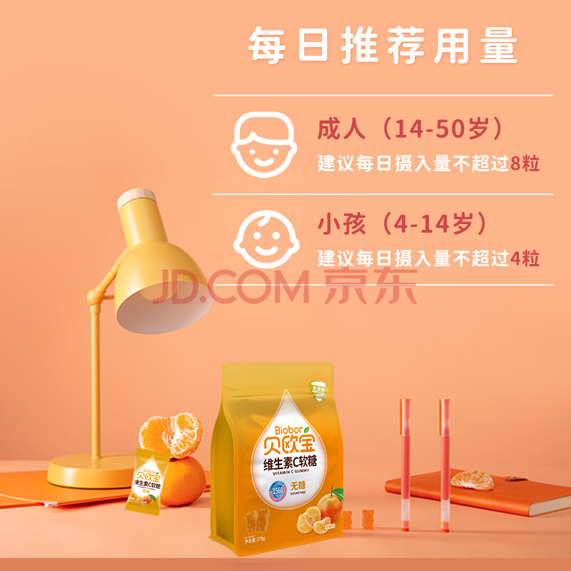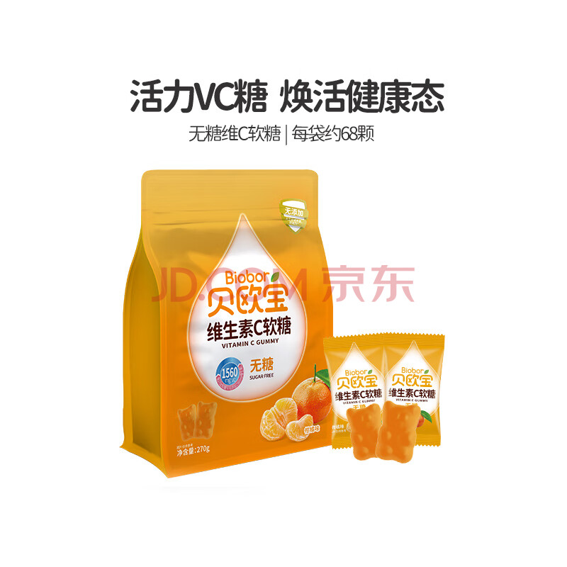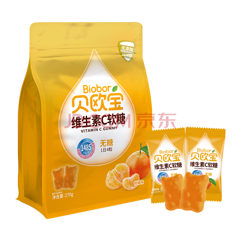 商品名称:贝欧宝 维生素C软糖 270g 柑橘味 无糖 休闲零食 新年糖果 年货