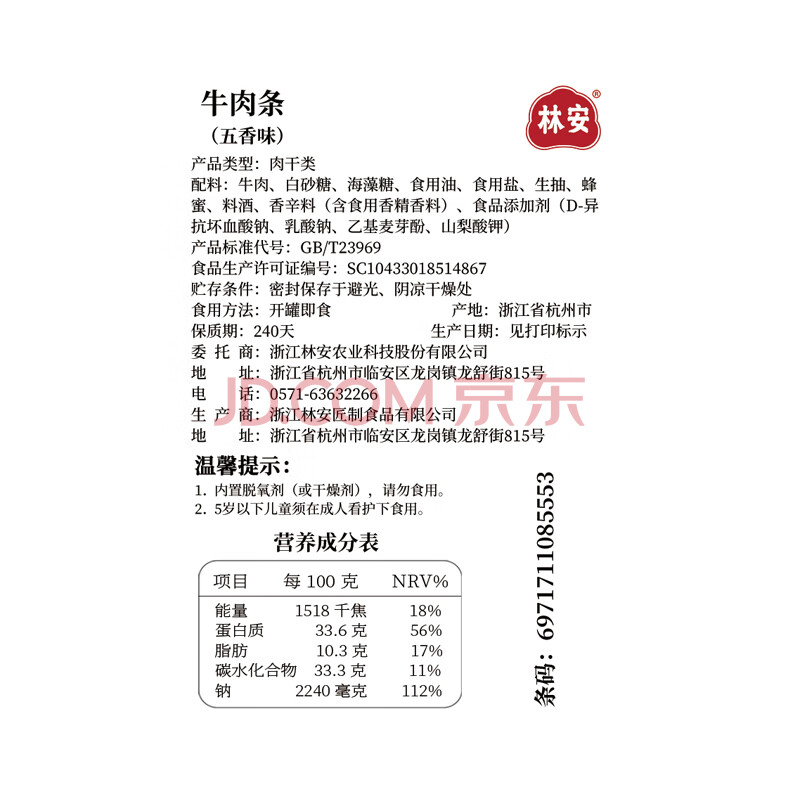 商品名称:向后转 五香口味牛肉条350g/罐装手撕熟食内蒙牛肉干肉脯休闲零食品即食