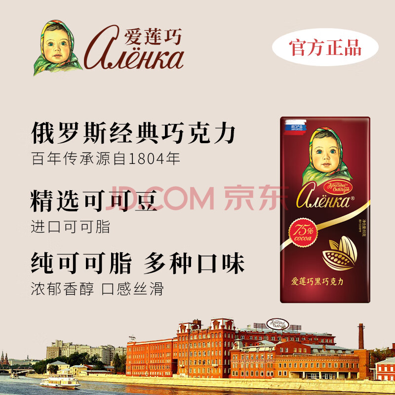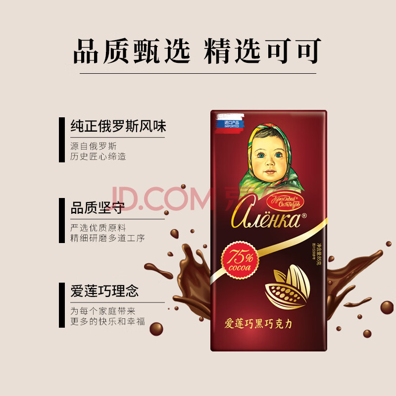 爱莲巧75%黑巧15g*42俄罗斯进口巧克力 大头娃娃 休闲零食 下午茶