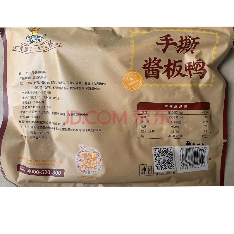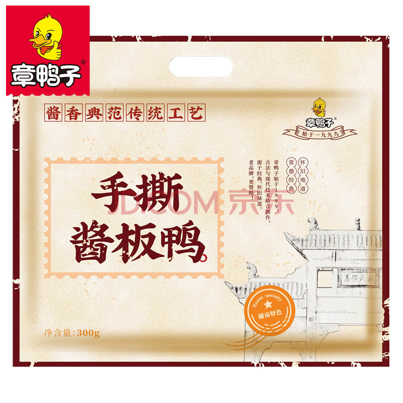 商品名称:章鸭子 手撕酱板鸭300g 湖南特产香辣板鸭肉零食卤味熟食