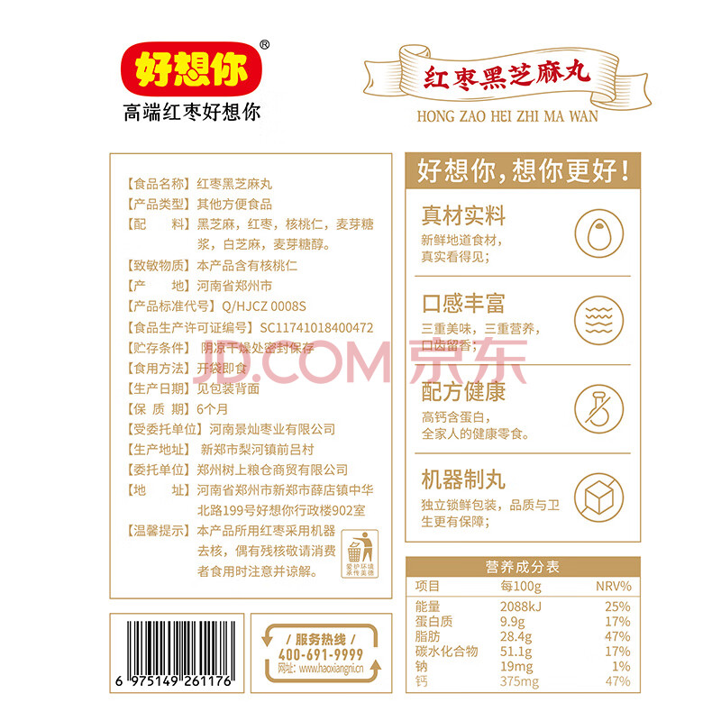 商品名称:好想你红枣黑芝麻丸礼盒675g 零食中式糕点礼盒孕妇养生丸 中秋送礼礼包
