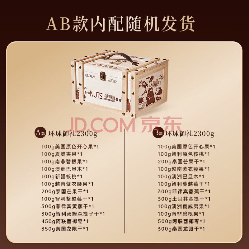 商品名称:臻味年货高端坚果干果礼盒环球御礼2300g(高端木盒) 企业团购福利送礼