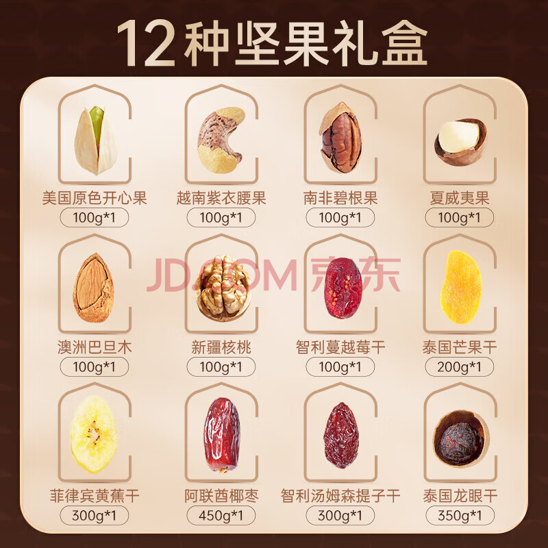 京东京造 纯坚果年货礼盒1560g/11袋每日坚果松子开心果春节福利送礼团购