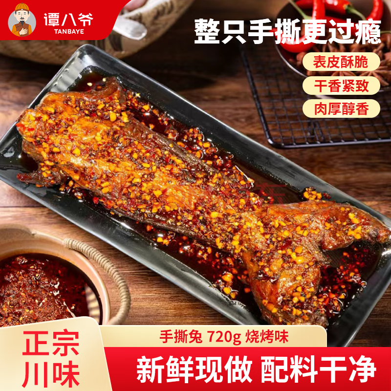 商品名称:谭八爷手撕兔720g烧烤味四川特产整只全兔麻辣冷吃兔肉零食即食源头直发
