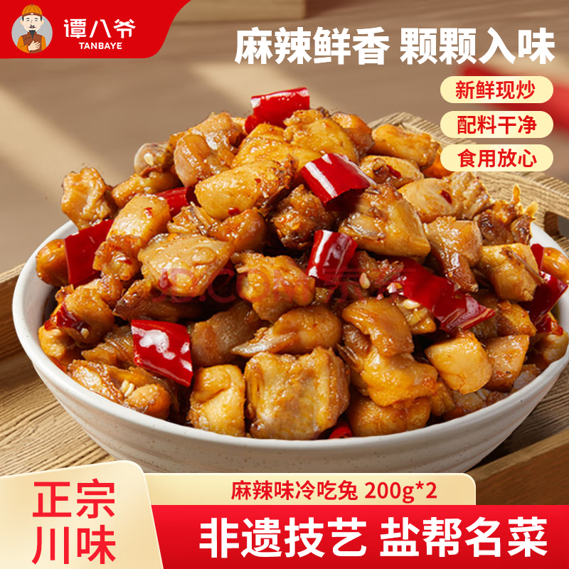 谭八爷麻辣冷吃兔200g*2四川自贡特产兔子肉兔丁零食即食下酒菜源头直发