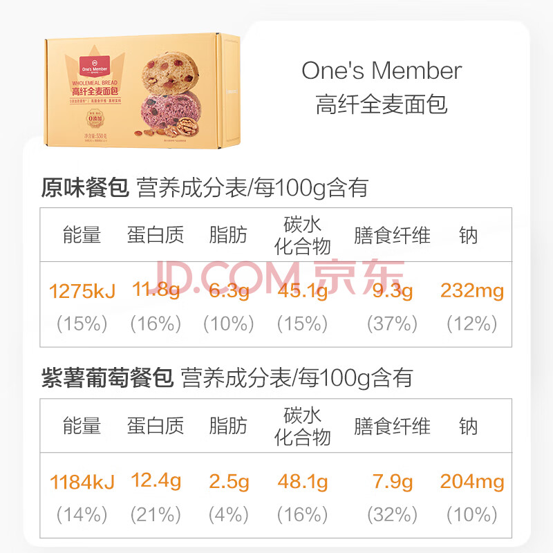 商品名称:1号会员店 下单现烤高纤全麦面包550g(8枚)手工代餐欧包源头直发包邮