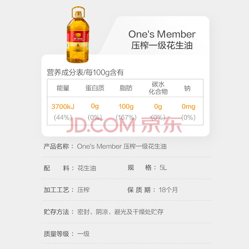 商品名称:1号会员店 【保真花生油】物理压榨一级花生油5L 食用油 充氮锁鲜春节佳礼