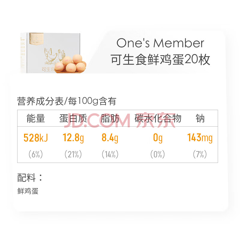 商品名称:1号会员店 可生食标准鲜鸡蛋20枚 净重2斤 1号会员店自有品牌 源头直发