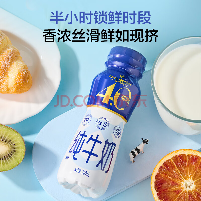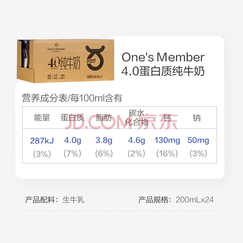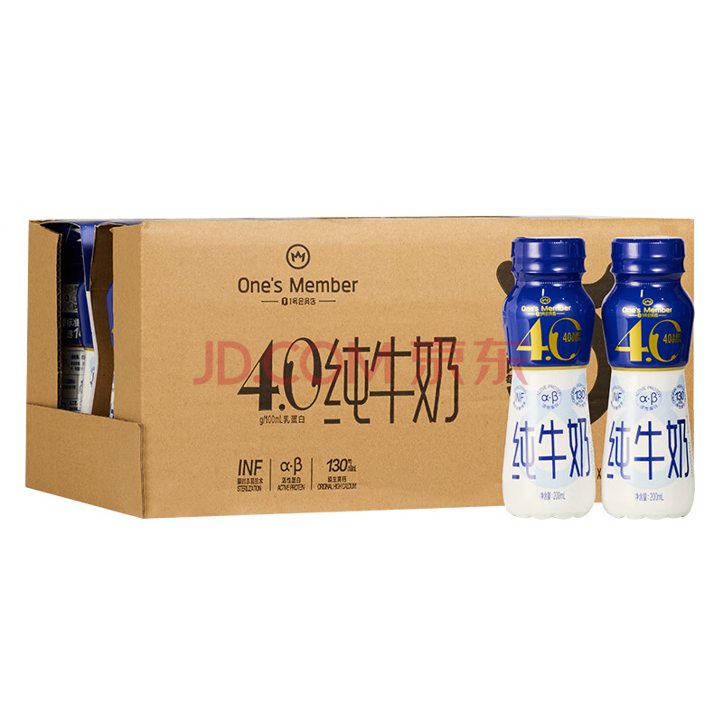 商品名称:1号会员店(One's Member)4.0g蛋白高钙全脂纯牛奶 200ml*24瓶 瓶装便携 量贩整箱