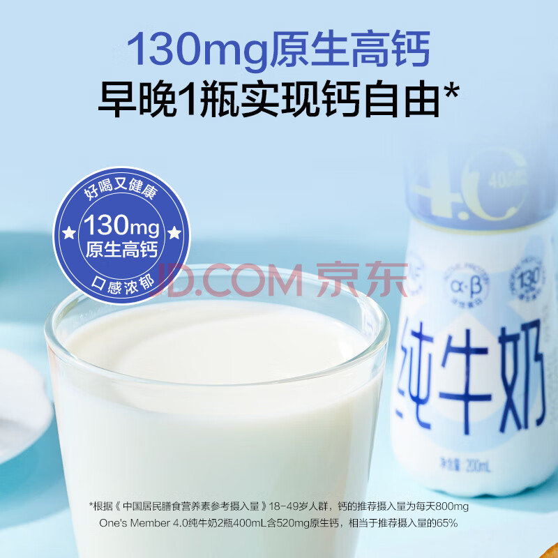 > 1号会员店(One's Member)4.0g蛋白高钙全脂纯牛奶 200ml*24瓶 瓶装便携 量贩整箱