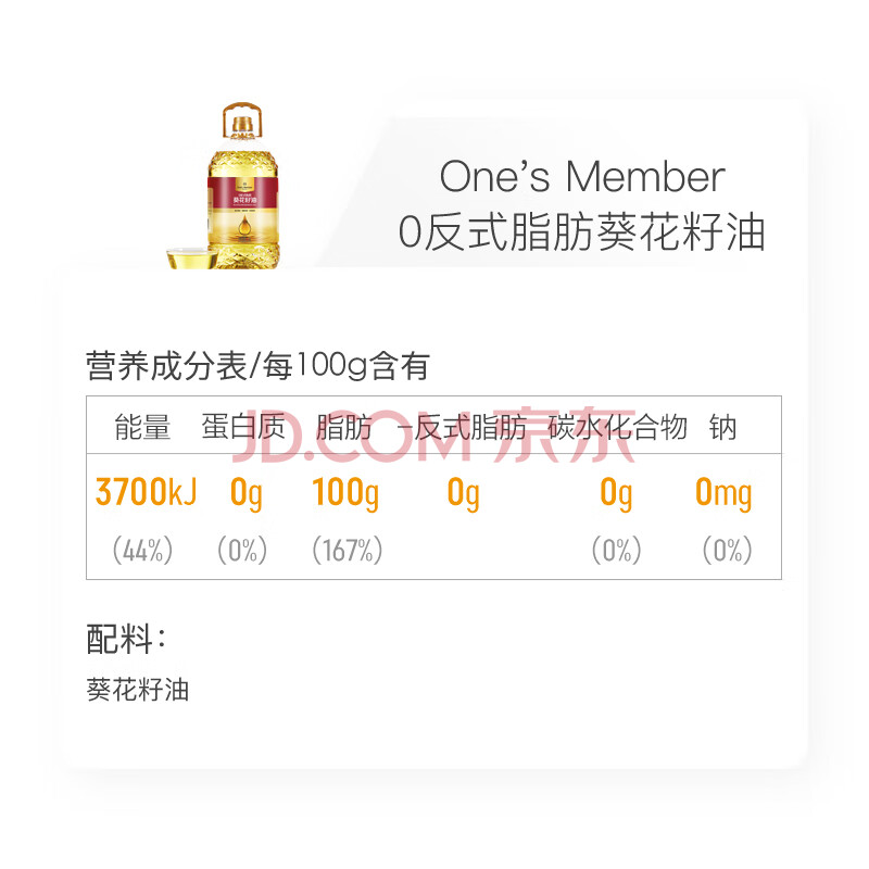商品名称:1号会员店 0反葵花籽油 5L 压榨一级 食用油 充氮锁鲜春节佳礼团购