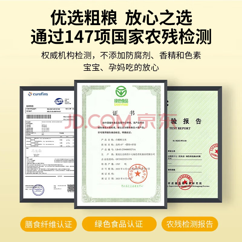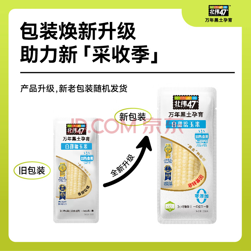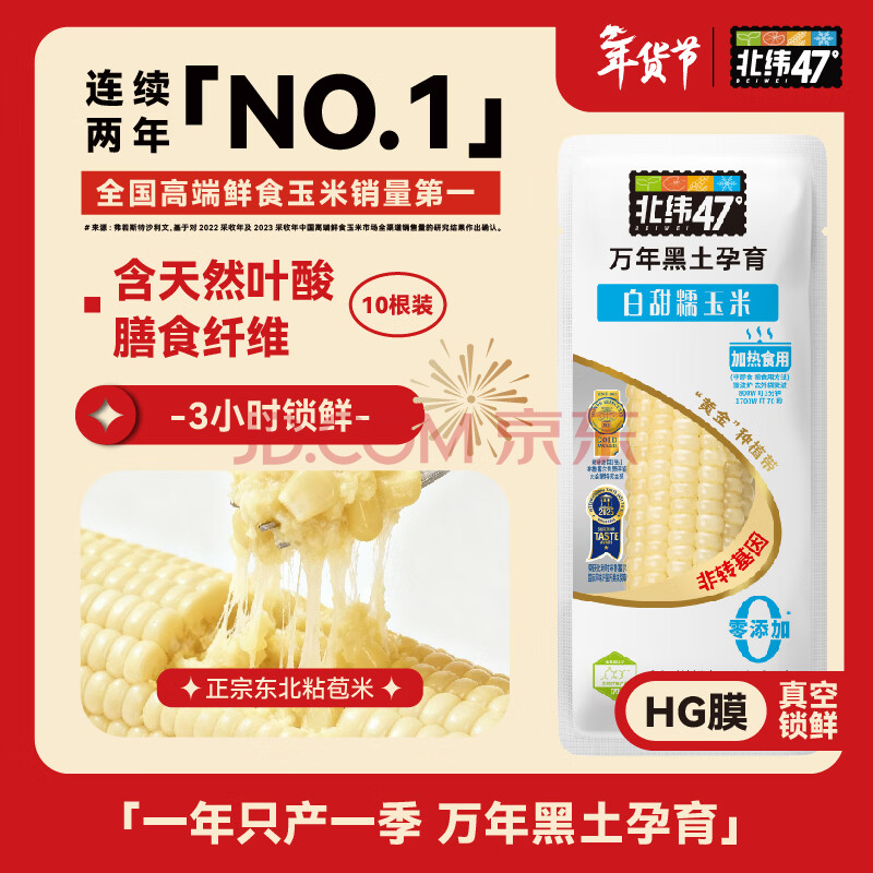 商品名称:北纬47度 白甜糯玉米4.6斤(230g*10根 ) 东北鲜黏玉米棒真空包装 早餐苞米