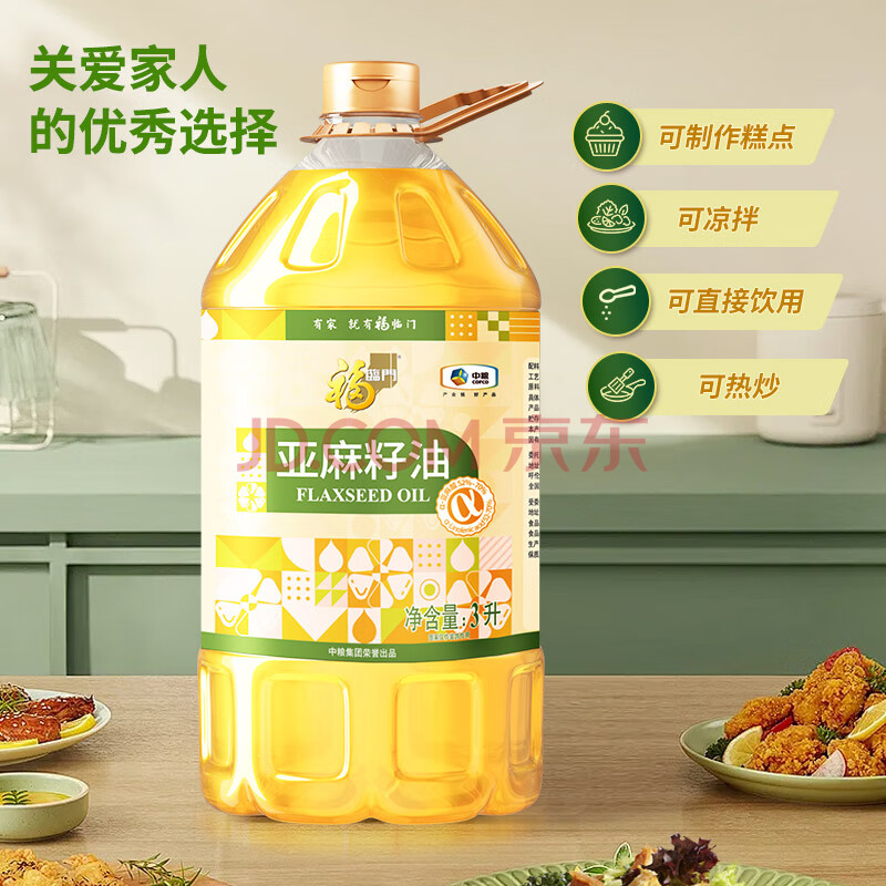 > 福临门 食用油 压榨一级亚麻籽油3L【保真亚麻籽油】 中粮出品