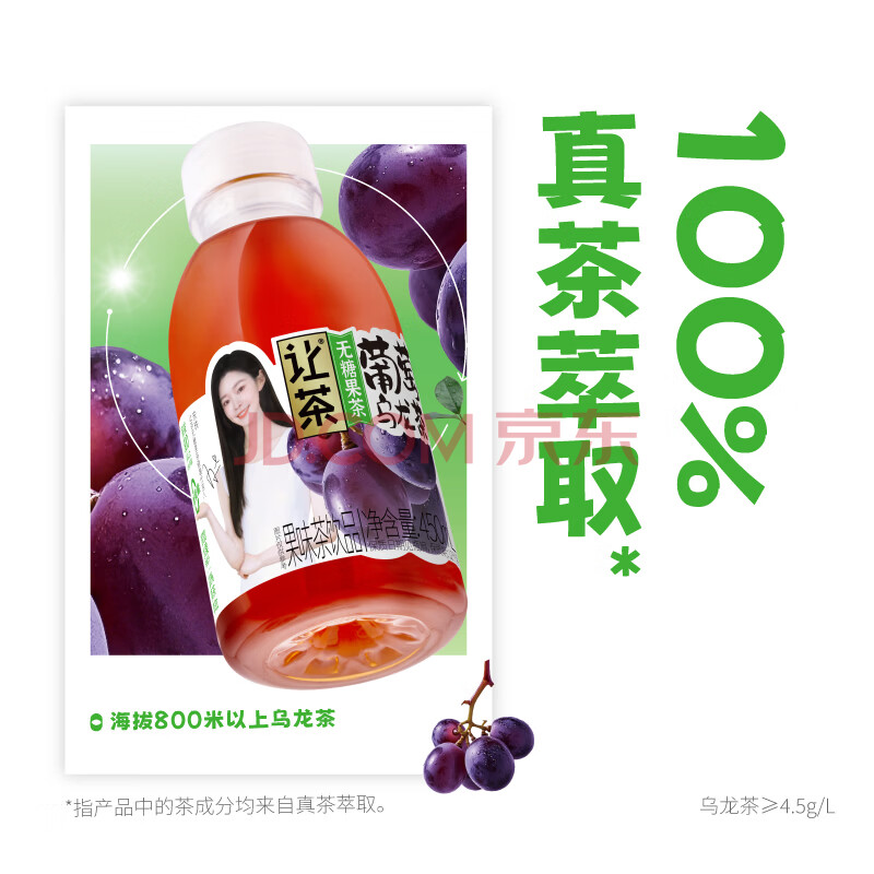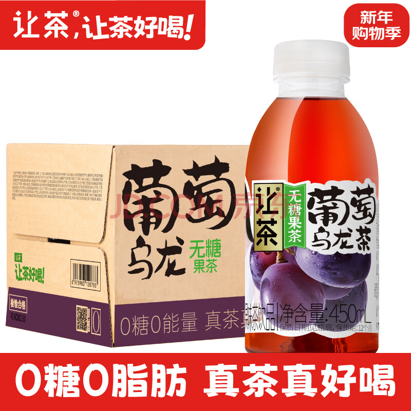 商品名称:让茶无糖葡萄乌龙果茶饮料0糖0脂肪解渴解腻火锅饮品450ml*15瓶整箱装