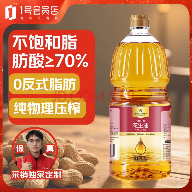商品名称:1号会员店【保真花生油】压榨一级花生油 食用油充氮锁鲜1.8L春节团购送礼