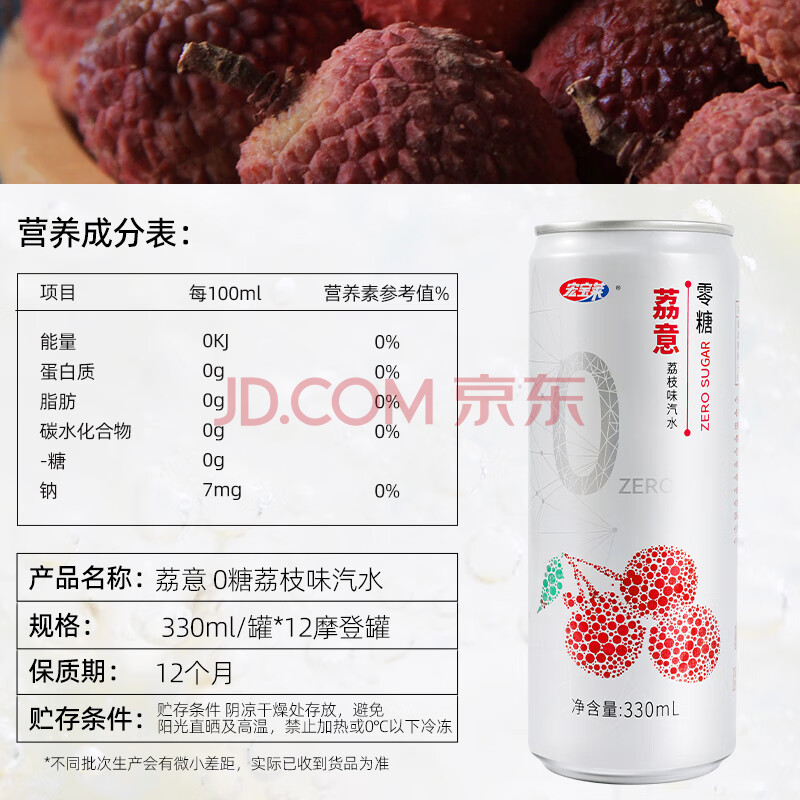 商品名称:宏宝莱荔意0蔗糖0脂0卡荔枝味汽水零卡零脂碳酸饮料330ml*12罐 整箱装
