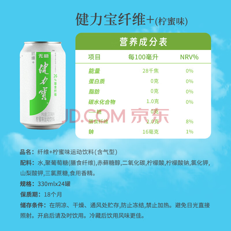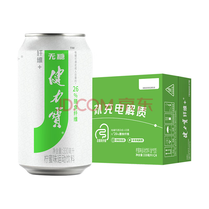 商品名称:健力宝运动碳酸饮料无糖0脂补充电解质膳食纤维+柠蜜味330ml*24