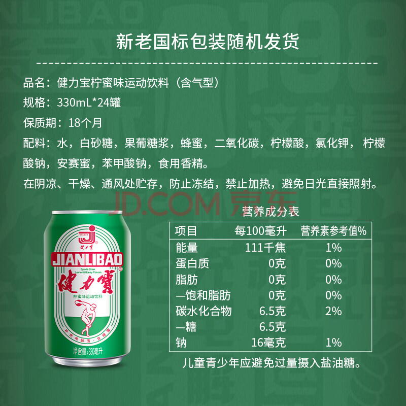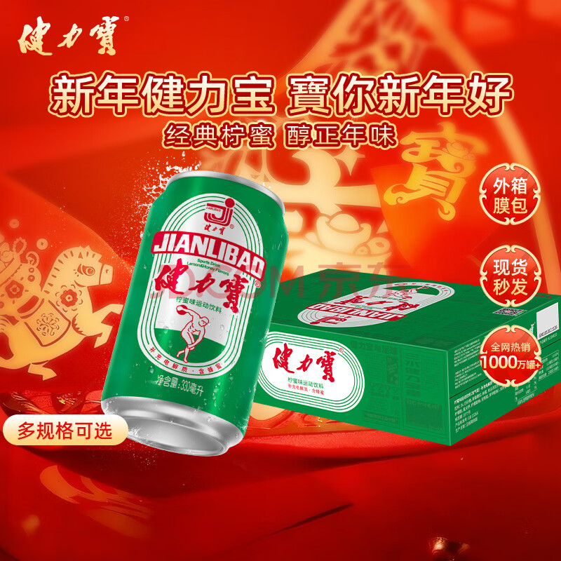 商品名称:健力宝柠蜜味330mL*24罐年货礼盒经典国货补充电解质汽水果味碳酸饮料