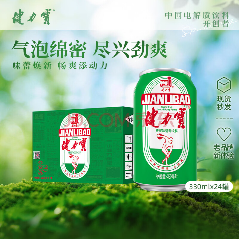商品名称:健力宝柠蜜味330mL*24罐经典国货补充电解质果味汽水碳酸饮料