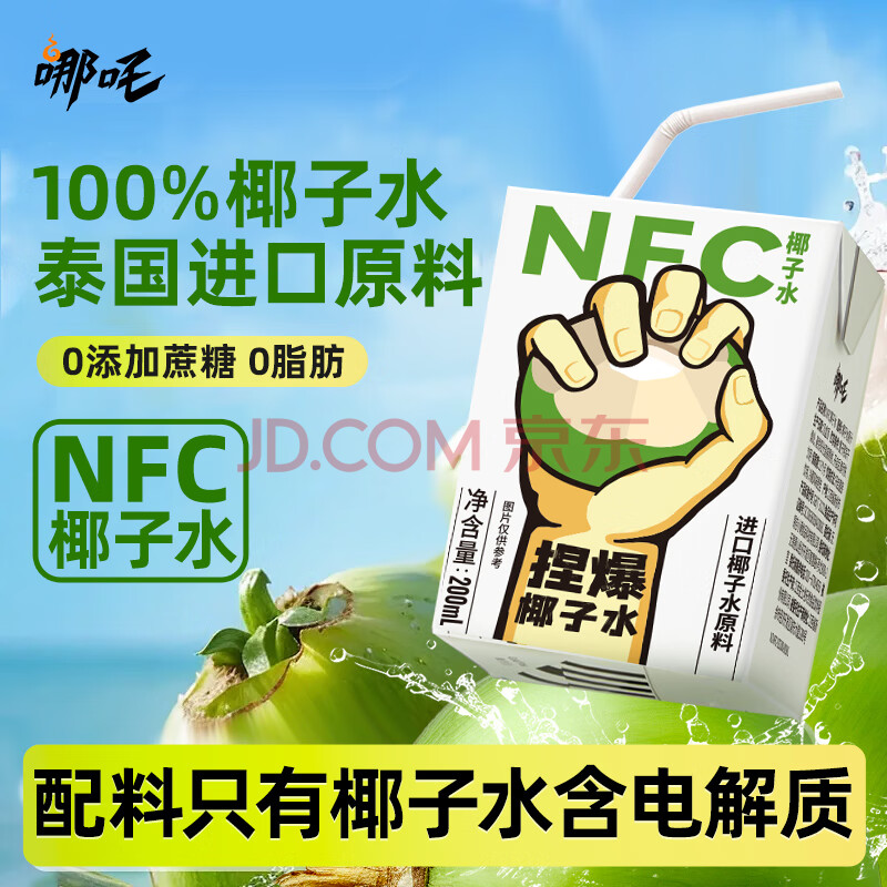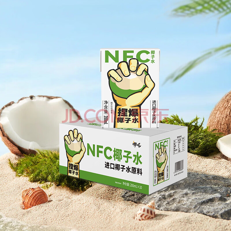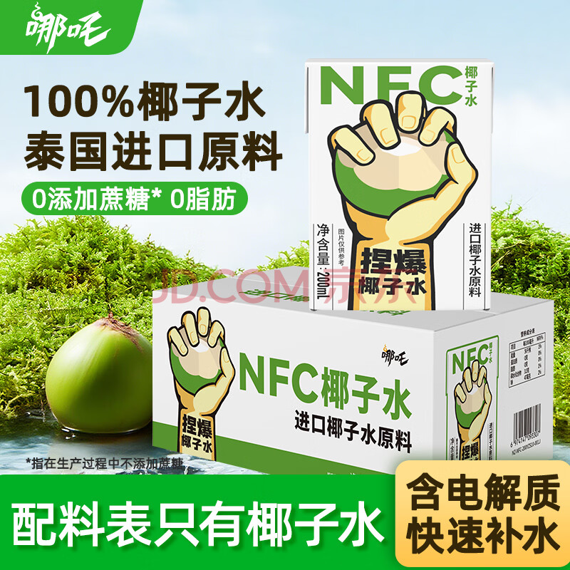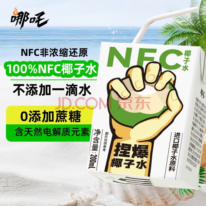 商品名称:哪吒100%NFC椰子水200ml*10盒含天然电解质0脂肪进口果汁火锅饮料年货