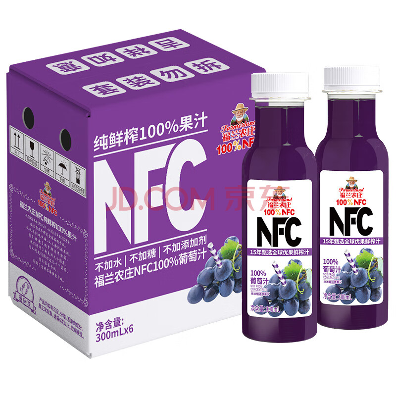 商品名称:福兰农庄NFC葡萄汁100%纯鲜果压榨果汁配料表干净300ml*6瓶整箱装年货必囤