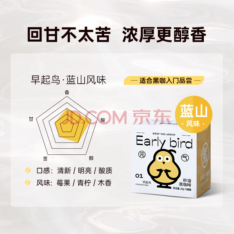 > 碧翠园 纯黑咖啡粉 冻干速溶咖啡0脂肪研磨无蔗糖添加 中浅烘焙10包*1盒