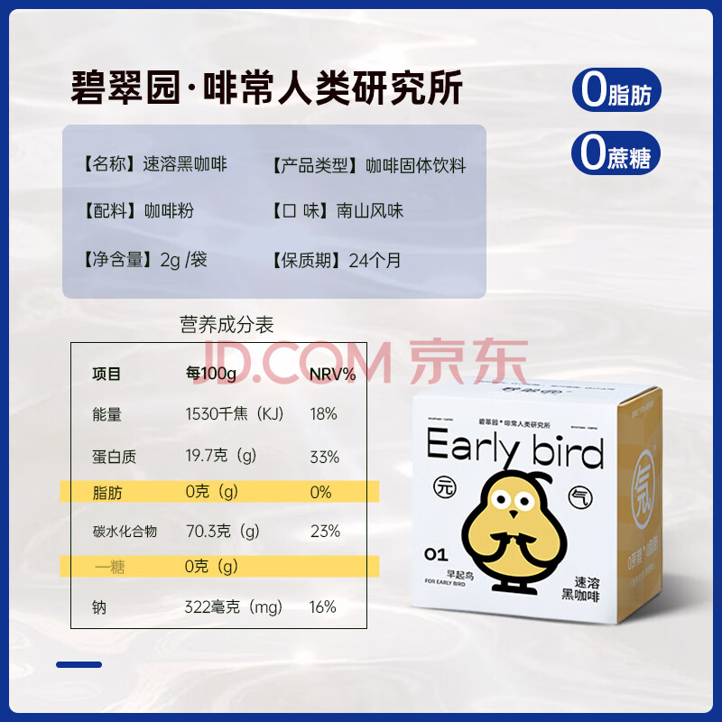 商品名称:碧翠园 纯黑咖啡粉 冻干速溶咖啡0脂肪研磨无蔗糖添加 中浅烘焙10包*1盒