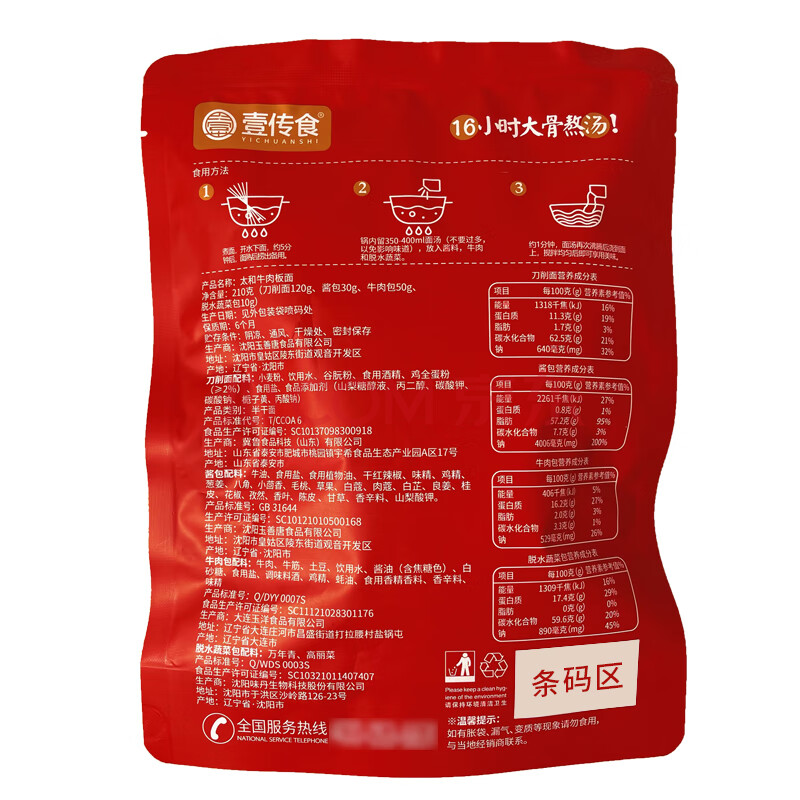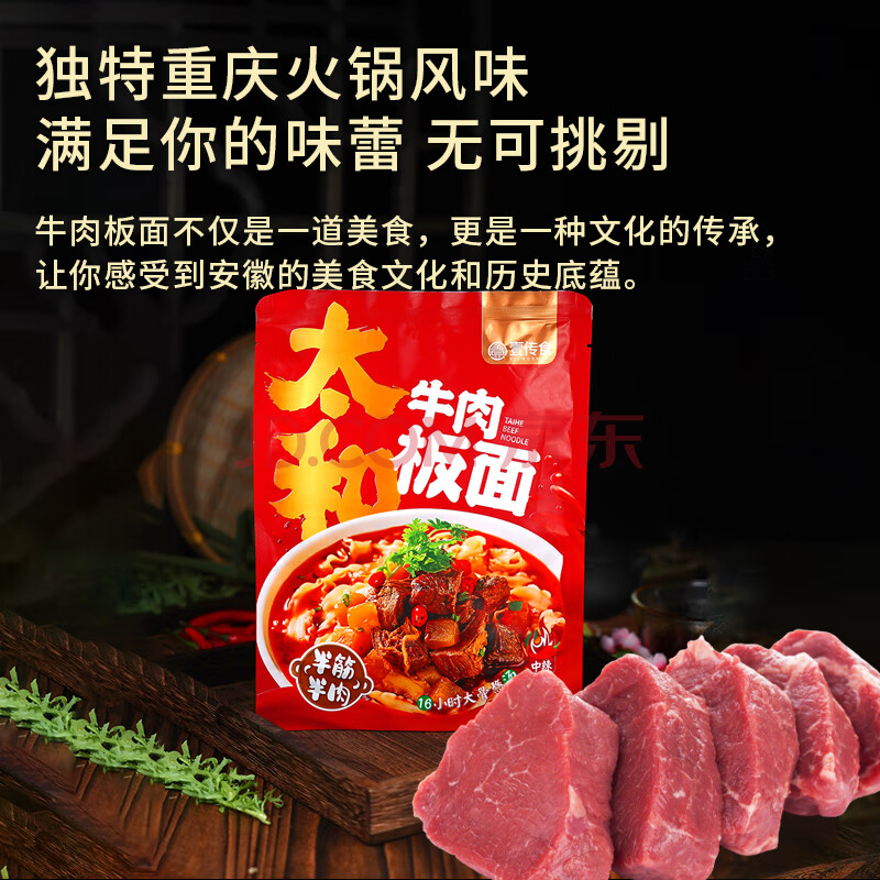 商品名称:壹传食太和牛肉板面210g 袋装非油炸即食水煮方便速食拌面 早餐夜宵