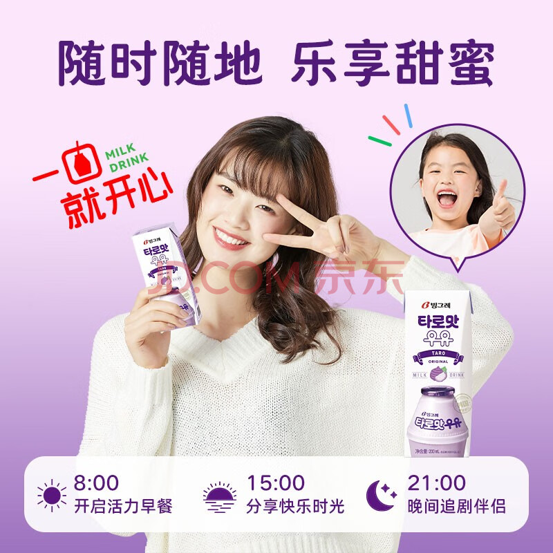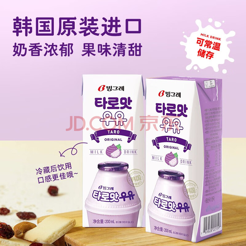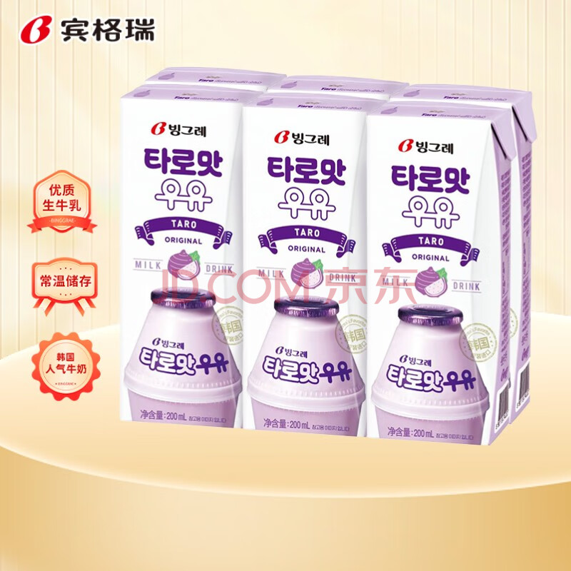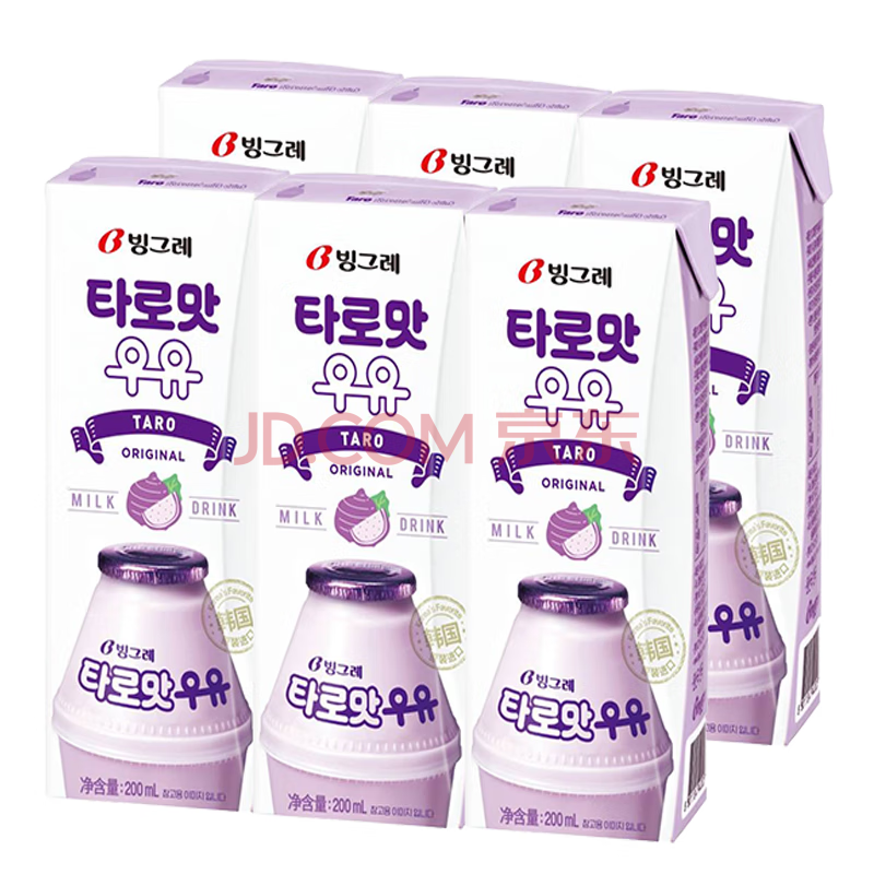 商品名称:宾格瑞香芋味牛奶韩国原装进口牛奶儿童学生早餐奶200ml*6 牛奶饮料