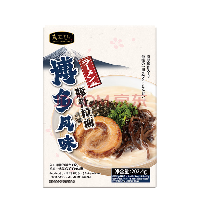 商品名称:良工坊博多风味豚骨拉面202.4g/盒 日式叉烧方便速食日本风味拉面汤面