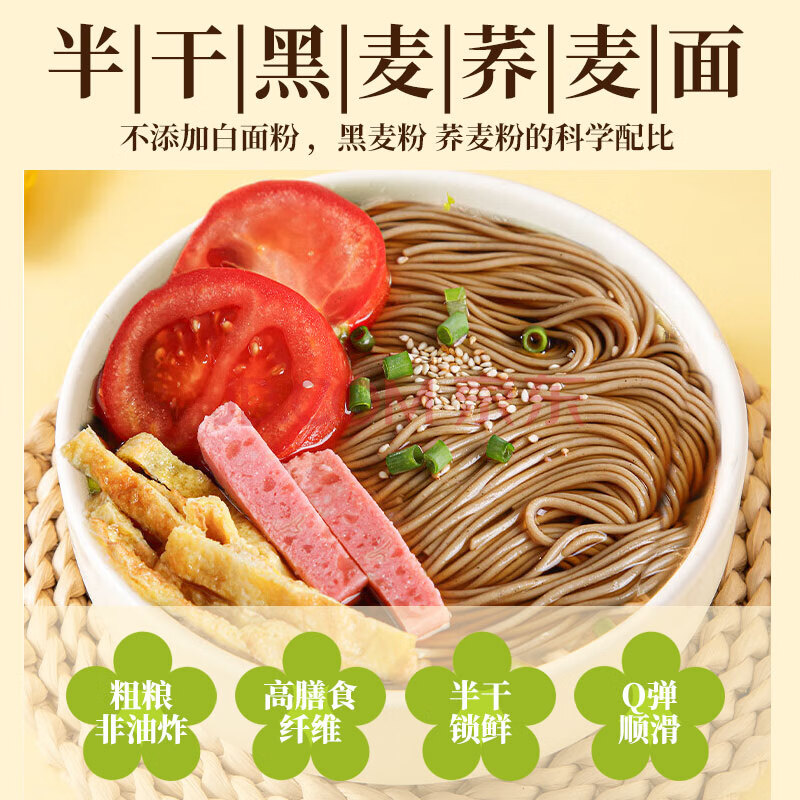 商品名称:Arale黑麦荞麦面 0脂半干面条 鲜面500g 低脂粗粮 杂拌挂面代餐面1斤