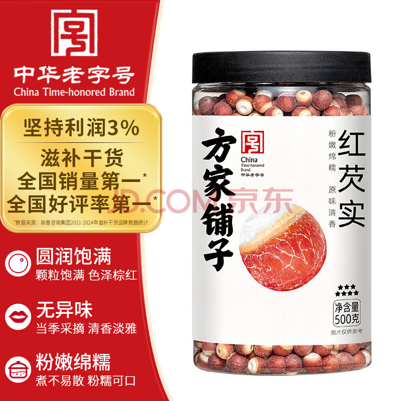 商品名称:方家铺子中华老字号 七星严选大粒鸡头米500g 红芡实 1斤 炖汤煲粥配料