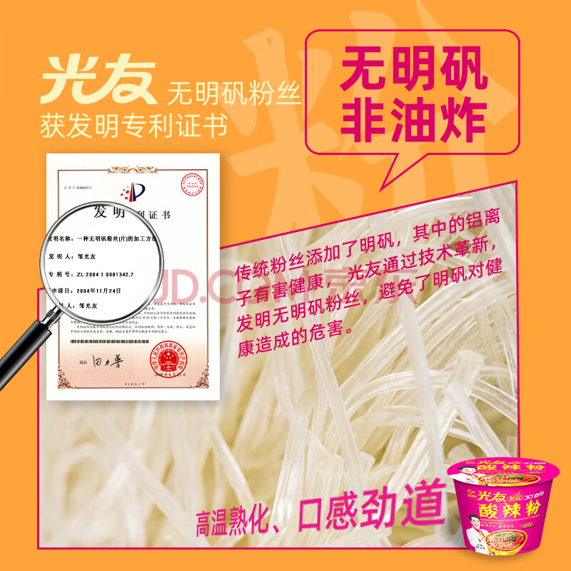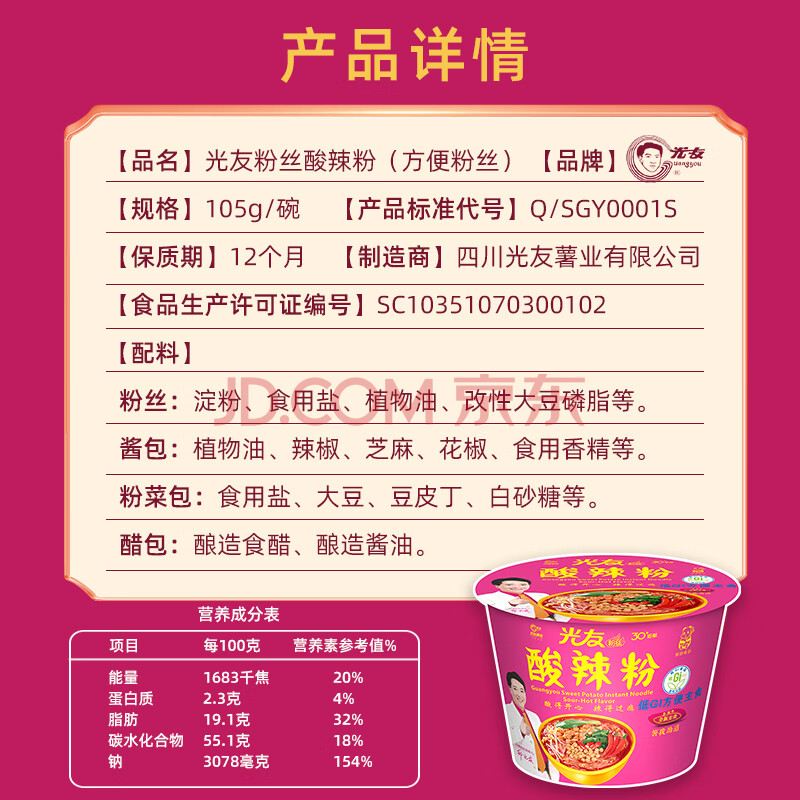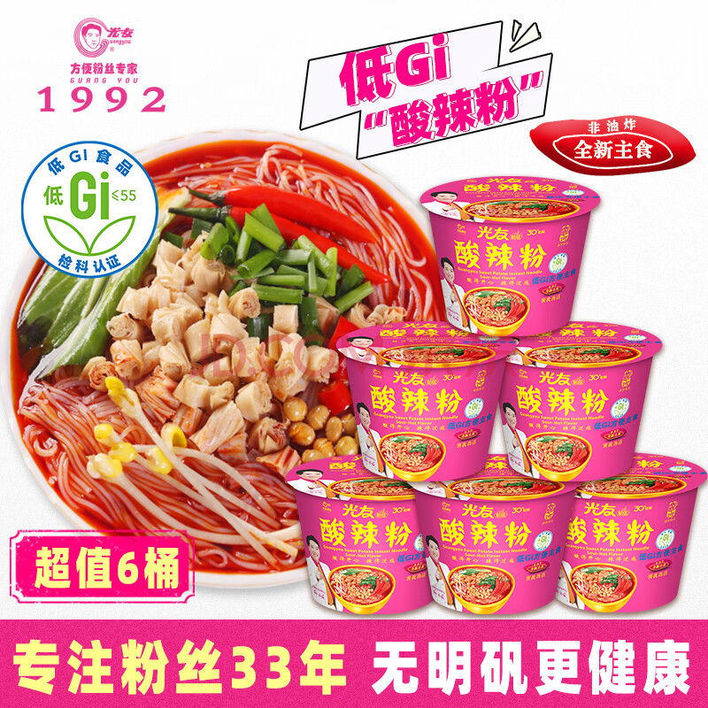 商品名称:光友酸辣粉整箱105g*6桶国货无明矾国产老牌粉丝低Gi食品方便速食